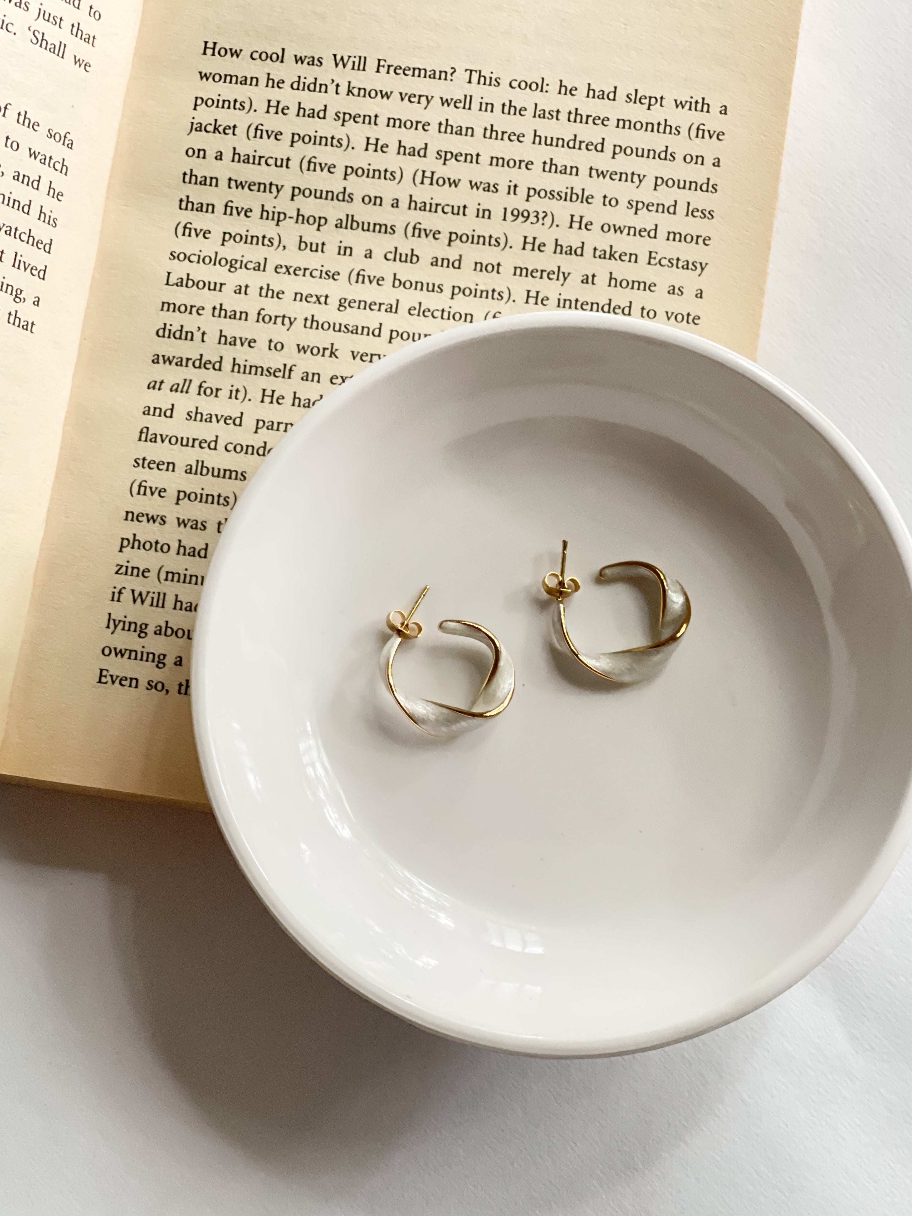 Twisting in perfect fluidity, Aurora Wave blends oceanic white with sculpted curves. The golden outline perfectly showcase it as the first gleam of dawn on water.