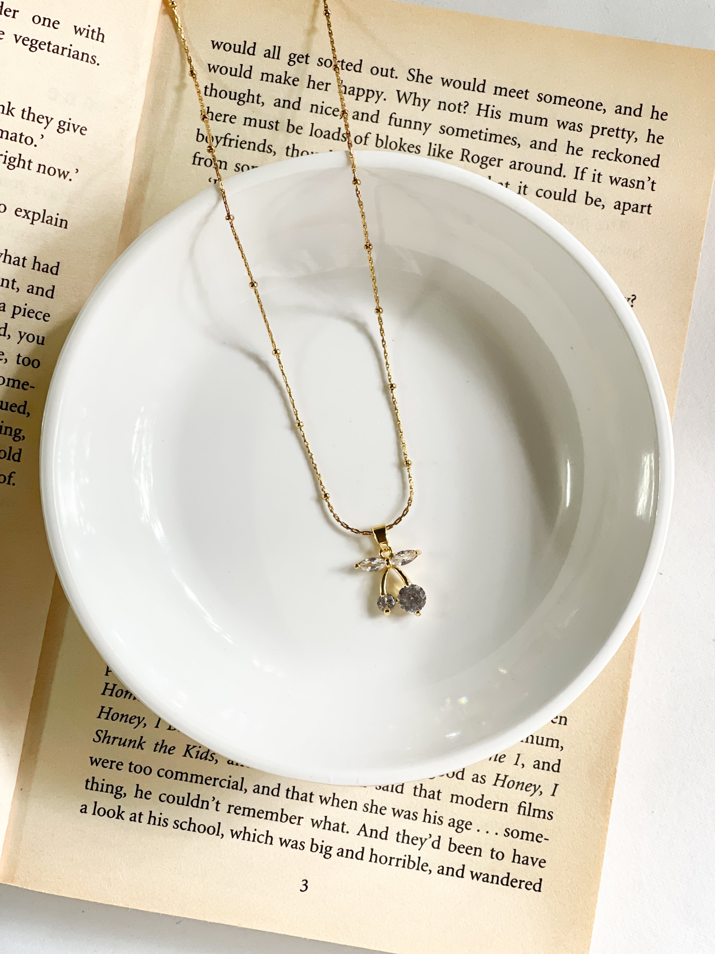 The Brielle Bow Necklace captures timeless allure with a golden bow that shimmers in light. Its twin oval stones and glittering drops create a perfect harmony of sparkle and sophistication.