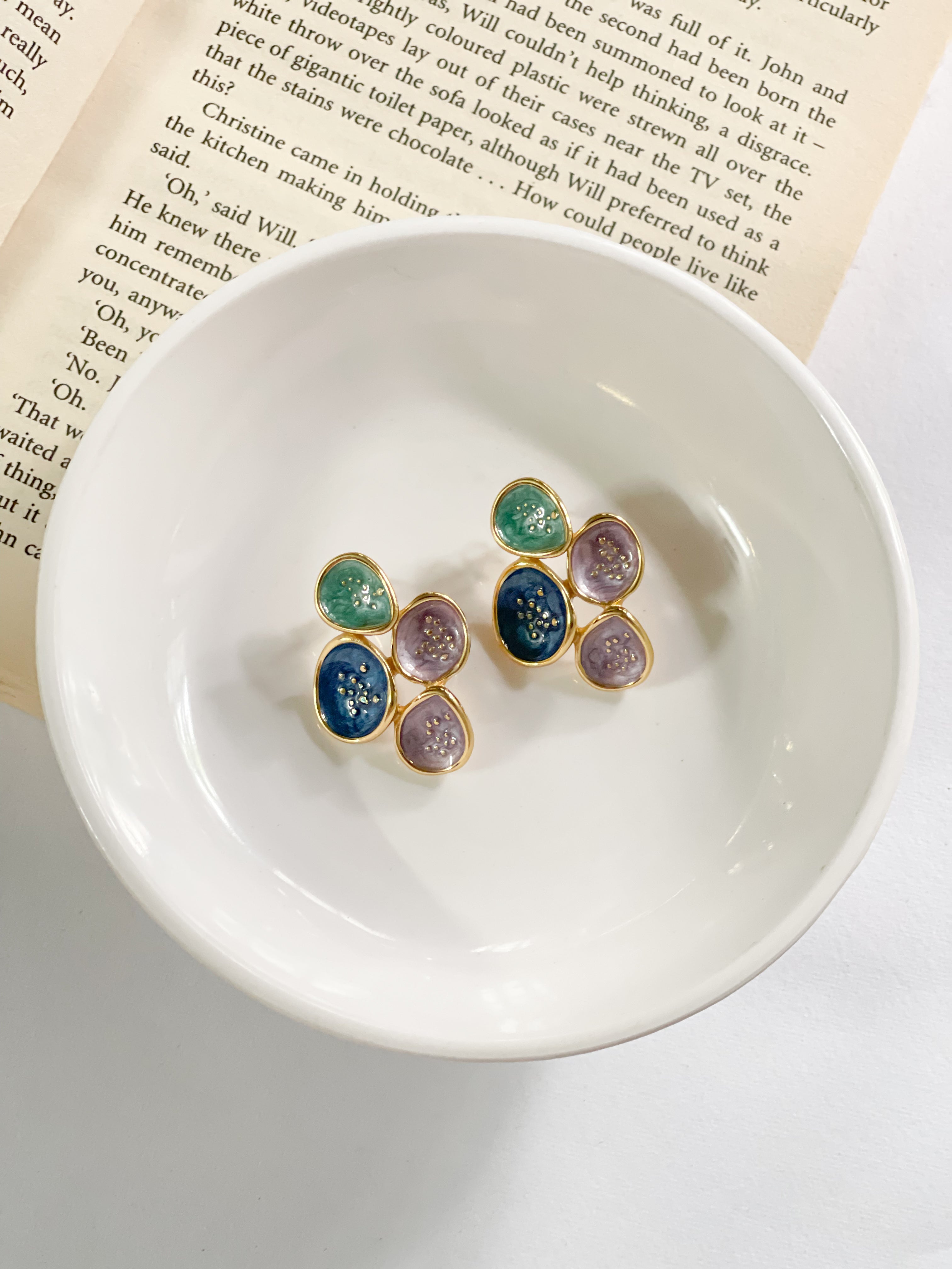Linked like phases of hidden moons, Garden of Moons glow in shades of sea green, blue and dusky lavender within golden outlines, speckled with stardust-like shimmer. A piece for dreamers who wear the universe close.