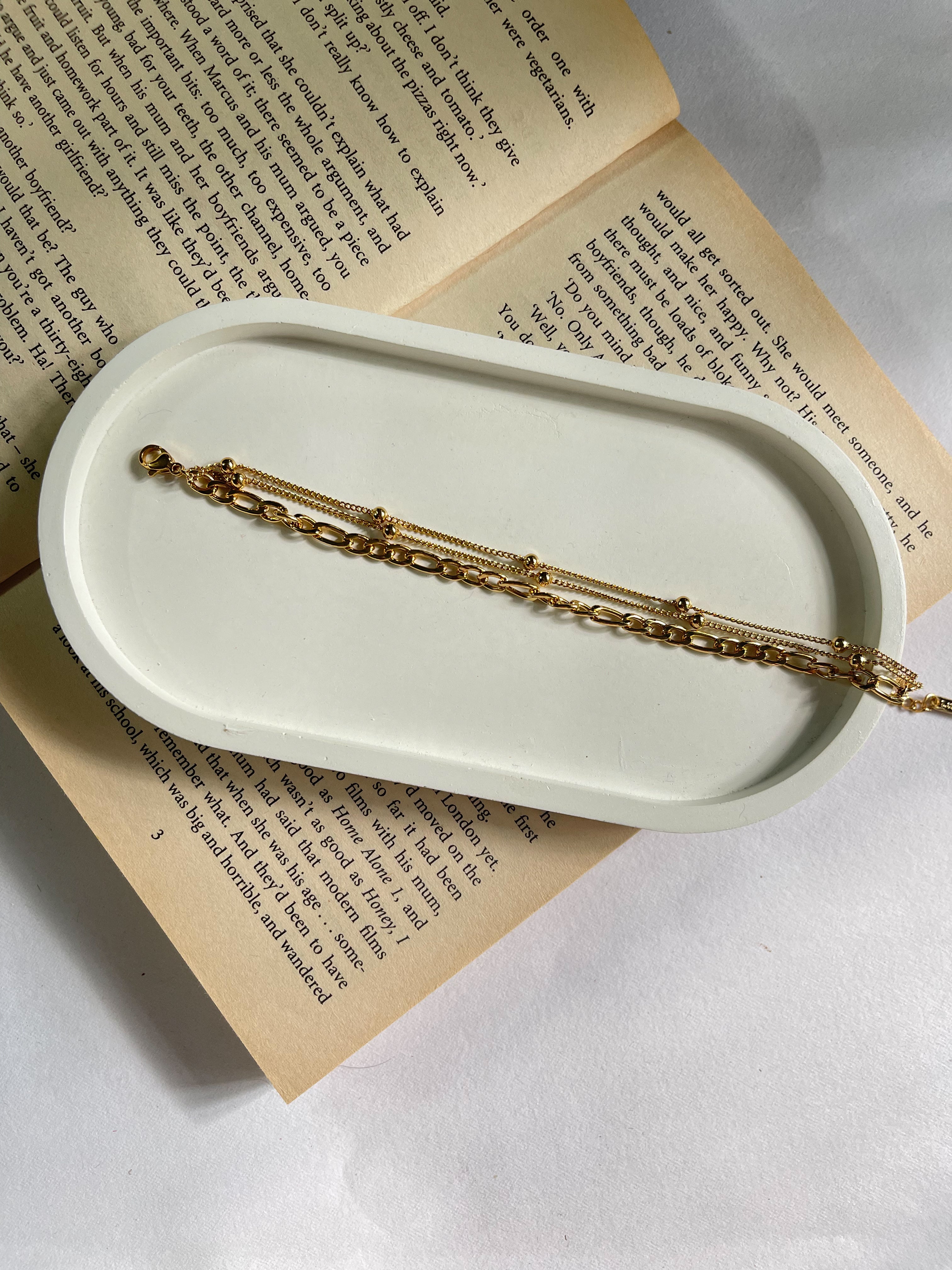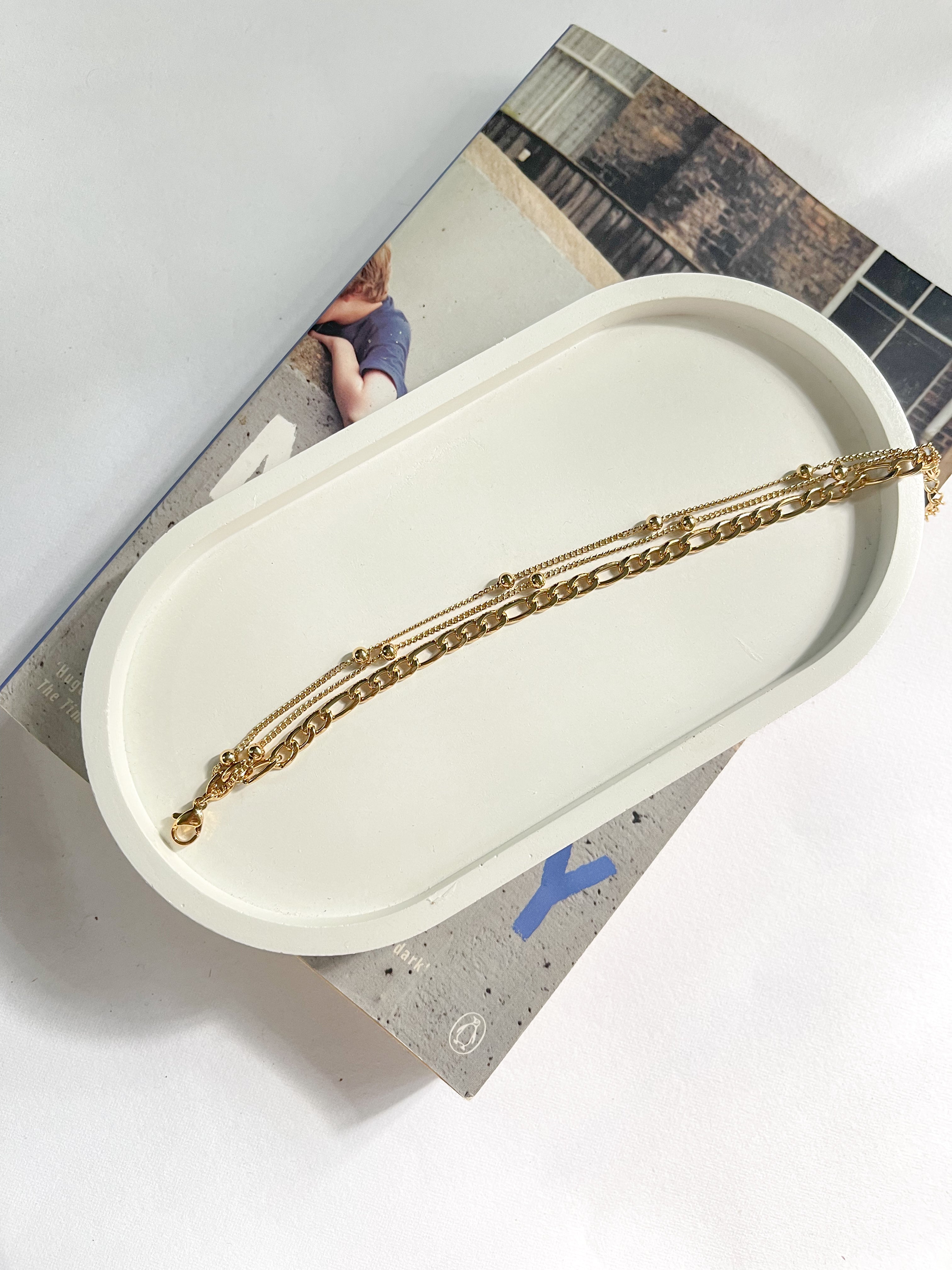 Golden Cadence weaves two fine bead-lined chains with a bold linked layer, balancing grace and power in perfect measure.