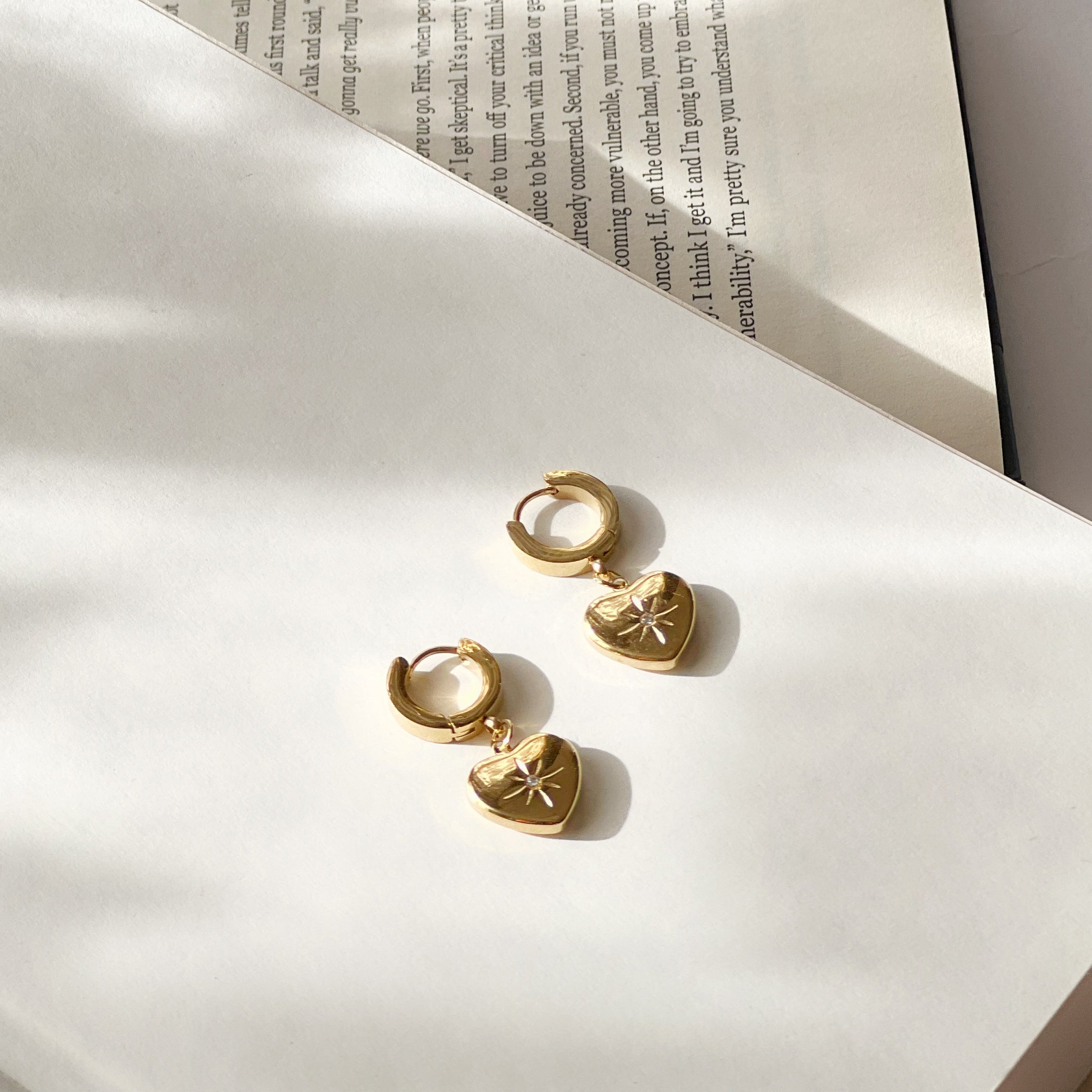 Adorn yourself with Liebe earrings featuring a sparkling heart suspended from a tiny hoop like love drops