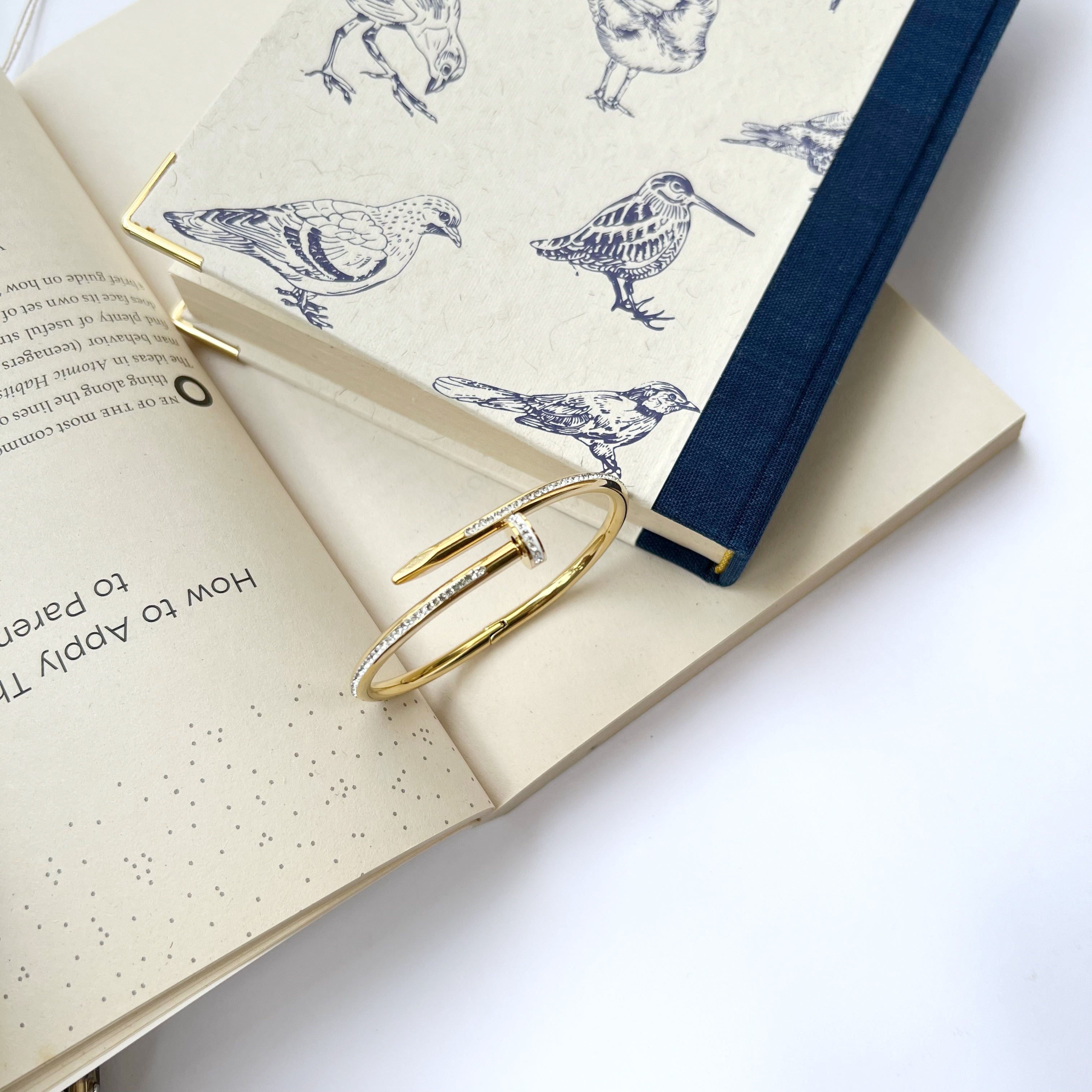 This cuff features a bold square design at its center, beautifully encircled by sparkling stones that catch the light with every movement.