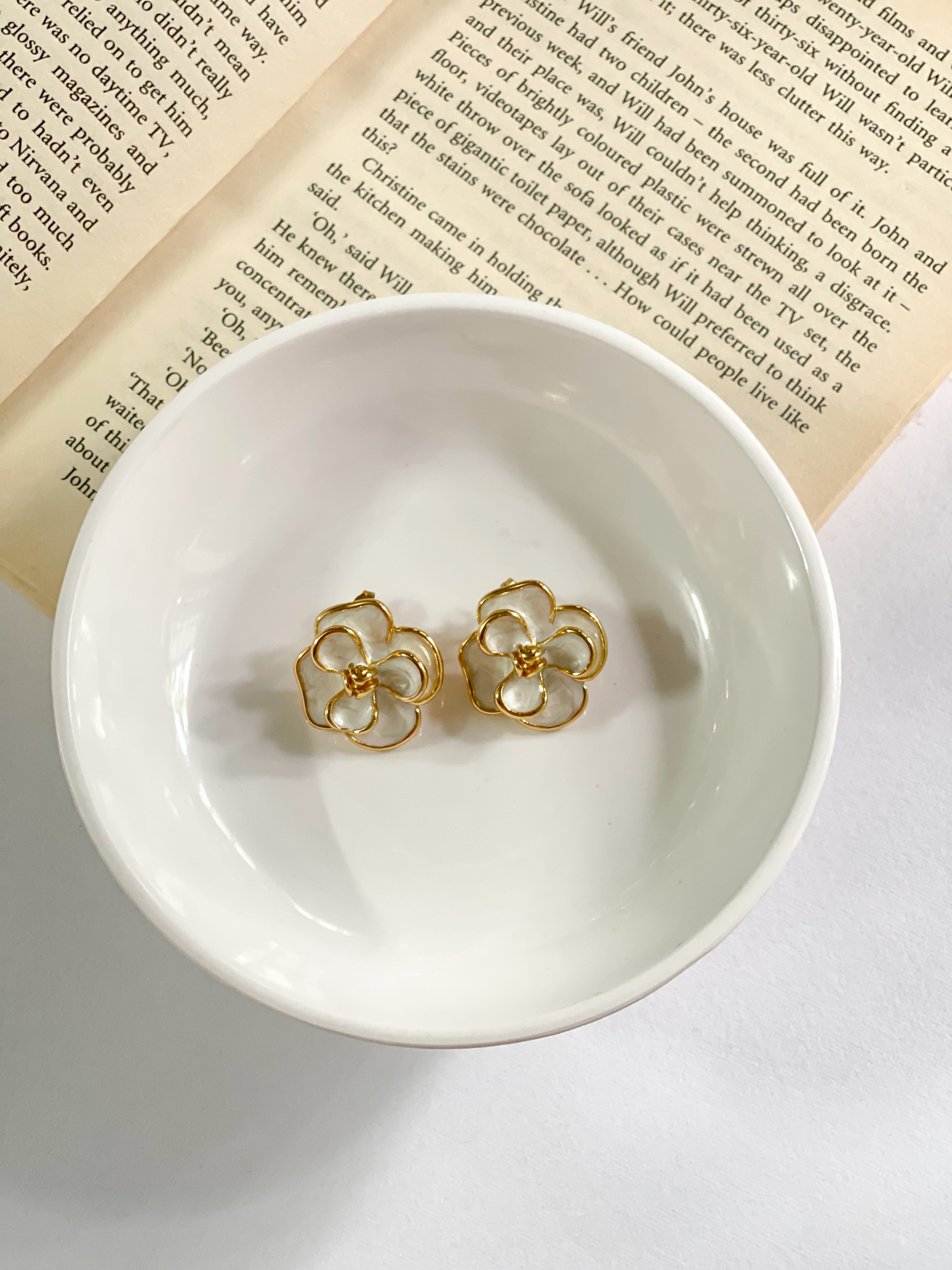 Ocean Bloom features an oceanic white flower edged with golden grace. Each petal whispers of calm seas and quiet elegance.
