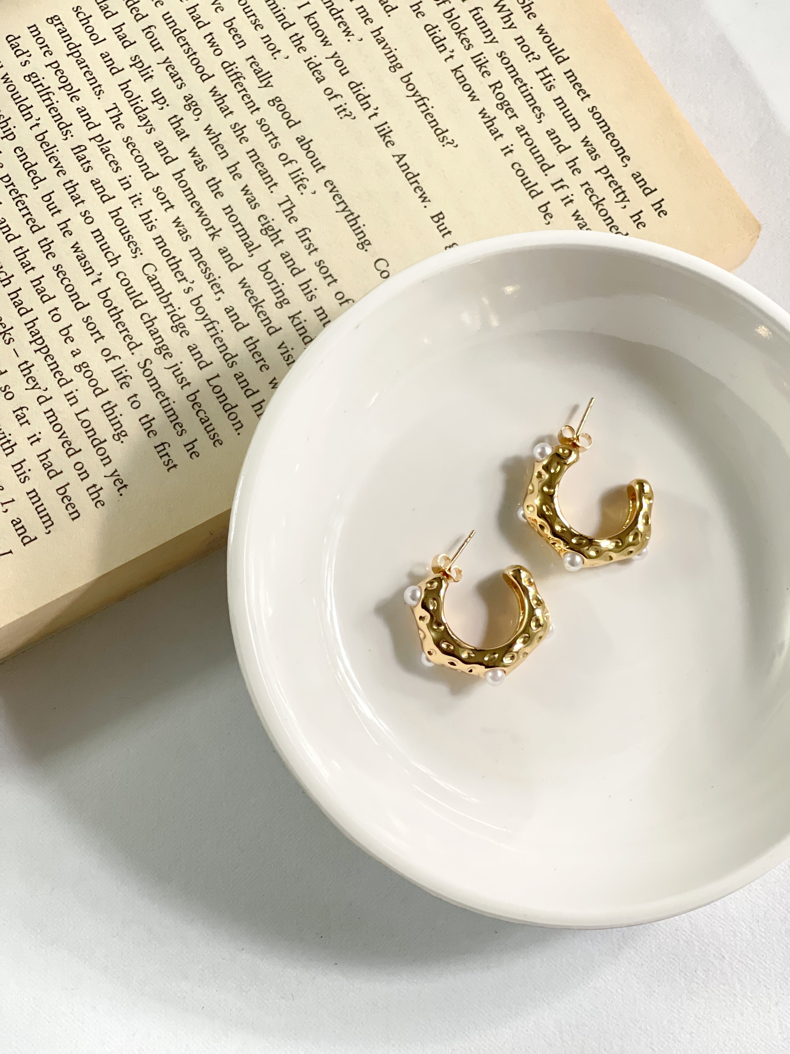 A golden Hoops adorned with lustrous pearls, Pearl Arc captures warmth and elegance. Classic, versatile and gracefully luxurious.