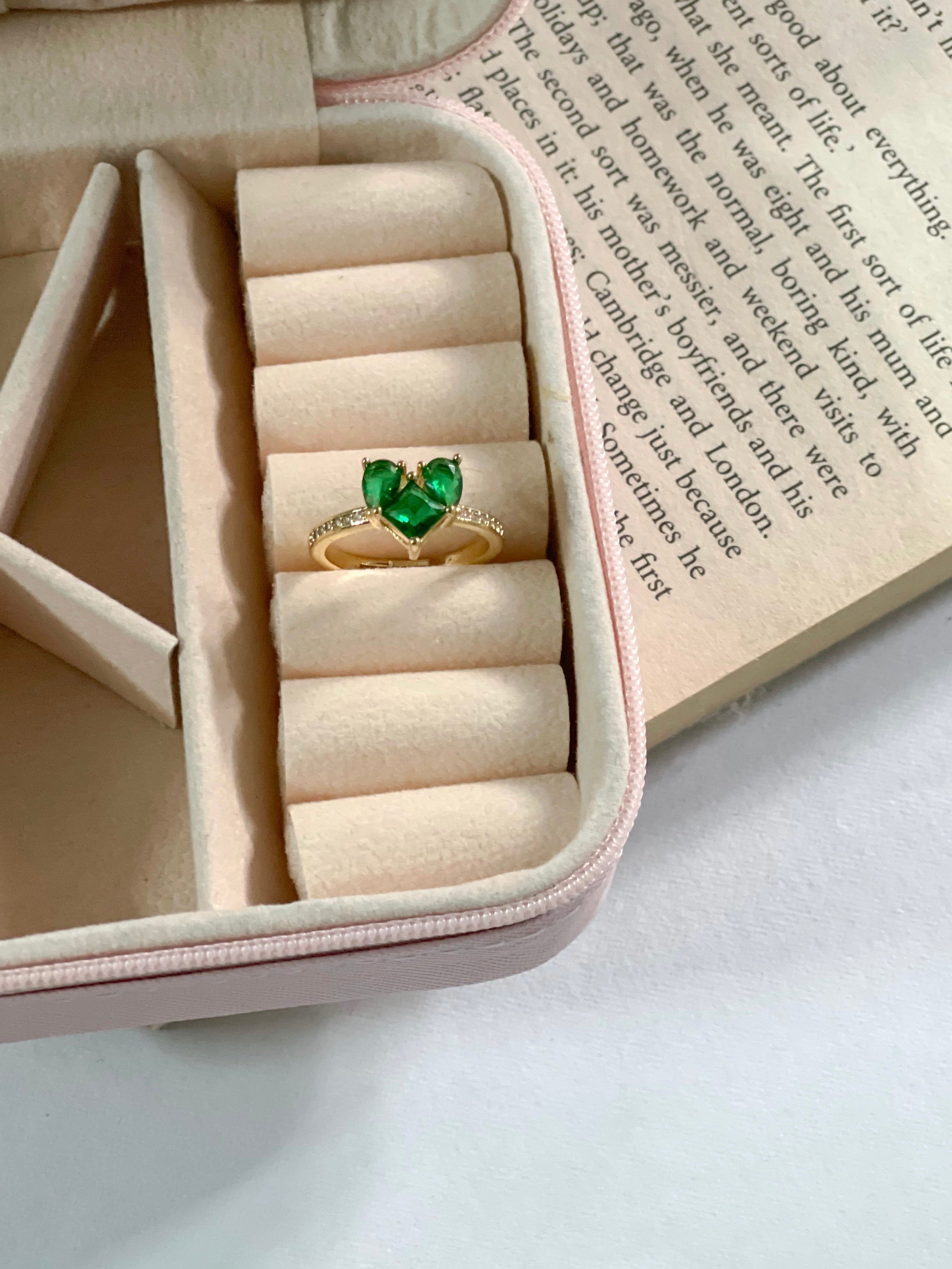 A single, bold heart takes form from three perfectly aligned emeralds, united to create a jewel that symbolises love, harmony and strength.